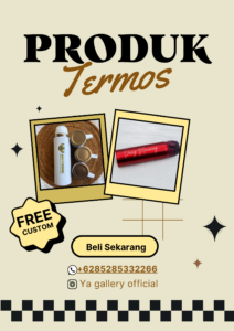 selain itu, keunggulan lain dari Termos ini adalah dari bahan stainles Sus 304 yang bakalan bantu minuman kalian tetap di suhu yg sama selama kurun waktu beberapa jam. Termos ini bisa digunakan untuk minuman panas ataupun dingin, jadi gak cuma aman tapi juga multifungsi!. Untuk pemesanan, kalian bisa banget langsung pesan di Website Ya gallery atau hubungi No yg tertera, kenapa yagallery? Karena Ya gallery menawarkan custom tidak hanya untuk termos tapi juga untuk tumbler,botol dan mug kalian. kualitas yg ditawarkan juga gak main-main dengan harga yg terjangkau. Yuk buruan order, jangan sampai ketinggalan!