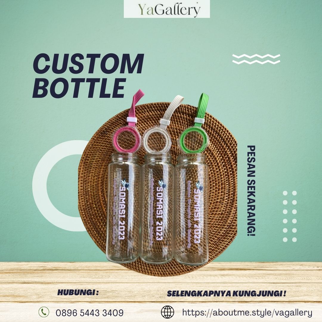 Harga botol minum custom bervariasi tergantung material, ukuran, dan jumlah pesanan. Botol plastik di Yagallery harga terjangau sekitar Rp 10.000-Rp 80.000an aja per botol.